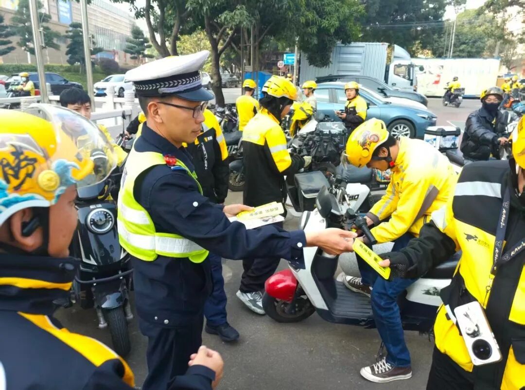 同时,宣传民警深入快递、外卖等行业,针对骑手骑行电动自行车出行特点,开展电动自行车交通安全精准宣传,重点讲解安全骑行规范、佩戴安全头盔的重要性,警示超速、逆行、闯红灯等交通风险,引导广大骑手把安全放在首位,做到文明出行,平安配送,切实从思想上提升交通安全意识,全力防范交通事故发生。